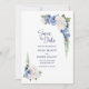Informe seus amigos e família sobre seu dia especial em estilo com este elegante cartão floral azul e branco guardado. Os modelos de texto fáceis de usar tornam a adição de todas as informações necessárias uma tarefa rápida e simples. Com uma variedade de tipos de papel e estilos de canto para escolher, você pode criar placas verdadeiramente exclusivas que reflitam sua individualidade, juntamente com a opção de baixar se preferir um formato digital.