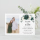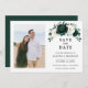 Elegante verde-esmeralda e botânico floral branco de marfim salve o cartão de data com rosas brancas e elegantes folhas de cor aquosa de eucalipto. Entre em contato comigo para obter ajuda sobre a personalização ou se você precisar de outro produto com este design.