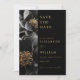 Este elegante casamento floral negro e dourado, exceto a data, pode ser personalizado com suas informações na tipografia moderna. Projetado por Thisnotme©