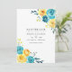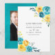 Turquesa e amarelo - foto de casamento em tons de azul turquesa e limão com detalhes em coral, apresentando flores e folhagens em aquarela. Ideal para qualquer tema ou casamento de jardim.