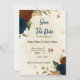 Belo tom de terra outono casamento exceto o convite de data que inclui terracota, bege e e flores azuis da Marinha com folhas verdes. PARA MAIS PRODUTOS CORRESPONDENTES, clique na coleção acima ou entre em contato comigo
