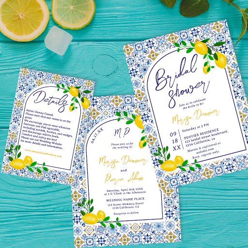 Reserve A Data Casamento floral de azulejos azuis italianos