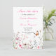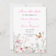 Lindo convite de casamento save the date com flores silvestres em rosa e borboletas fofas. Perfeito para um casamento de primavera ou verão. As palavras podem ser alteradas para atender aos seus próprios detalhes ou requisitos