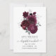 Casamento floral de prata de borgonha e folha falsa salve o cartão de data com acentos de ameixa personalizável para suas especificidades de evento.