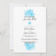 Este design apresenta elegantes flores azuis de aquarela. As lindas cores azuis do buquê são colocadas em uma elegante linha preta. Um design simples e elegante de flores, arranjado por cima e por baixo, com uma flor central que liga o título. Fonte de script elegante usada para o título combinado com um texto simples. Este casamento Salve a data design é ideal para qualquer tema de casamento. O design perfeito para todas as estações. Os convites de casamento e outros artigos de papelaria também estão disponíveis.