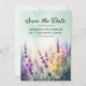 Lindo cartão de salvar a data do casamento de primavera/verão com flores de lavanda roxa. Personalizado com sua foto no verso. Compre cópias impressas ou encomende digital para compartilhar com amigos e familiares por e-mail ou nas redes sociais.