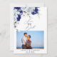 Anuncie seu dia especial com este elegante e sofisticado cartão Salvar a Data. A design apresenta um belo arranjo floral azul e marinho empoeirado, perfeito para um casamento romântico e eterno.