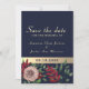 Anuncie seu grande dia em estilo com este casamento outono elegante salve o cartão de data. Apresentando um fundo azul marinho, sotaques arrojados e florais românticos de aquarela com um rosa de pincel, este design combina elegância do eterno com encanto sazonal. O verso inclui espaço para uma fotografia de casal pessoal, fazer que seja uma bela guarita para os convidados. Perfeito para casamentos de outono, comemorações rústicas e eventos românticos modernos. Personalize facilmente nomes, datas e detalhes.