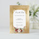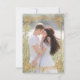 Crie um casamento no inverno inesquecível com este feriado elegante, exceto a data design com um spray de pelúcia de rosas de Natal, poinsettia, colly e pinheiro, etiqueta branca com uma borda de ouro ornamentado e um fundo metálico de cor damasco de ouro metálico falso opulente. Inclui uma crista dourada personalizada com campos de texto iniciais. A parte traseira apresenta modelo de foto com quadro de ornamentado dourado opcional.