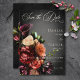 Entra num reino de elegância refinada com o nosso casamento floral escuro e sangrento. Concebido para cativar os sentidos, este design ostenta um fundo negro impressionante adormecido com uma explosão de flores autóctones em laranja queimada, cor de laranja queimada, matizes cremosos e toques de ouro luxuoso, complementados por uma folhagem verde-oliva exuberante. O texto cremoso flutua delicadamente sobre um borrão de luz suave, adicionando um toque de romance ao fascínio geral. Abrace a opulência da estação e dê o tom para o seu dia especial com este design, que deixa uma impressão duradoura nos seus convidados. Criado pela imprensa simplesmente de farmácia.