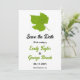 Este casamento outono elegante, exceto o convite de data, é perfeito para um casamento moderno no outono. A simples design apresenta folhas verdes de outono com elegante tipografia preta e verde sobre fundo branco.