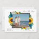 Design apresenta girassóis, rosas e margaridas elegantes com uma paleta de cores amarela, lacrimejante e branca ouro. Design também apresenta uma estrutura de cinza de carvão. Você pode alterar a cor de fundo na parte frontal e na parte traseira para a cor de sua escolha ou deixar ambas definidas como brancas. Modelo de foto via Pixabay licenciado sob CC0 e deve ser substituído por sua própria foto