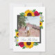 Design apresenta girassóis, rosas e margaridas elegantes com uma paleta de cores amarela, rosa e branca ouro. Design também apresenta uma estrutura de cinza de carvão. Você pode alterar a cor de fundo na parte frontal e na parte traseira para a cor de sua escolha ou deixar ambas definidas como brancas. Modelos de fotos via Pixabay licenciados sob CC0 e devem ser substituídos por suas próprias fotos