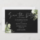 Este cartão elegante de save-the-date de casamento floral verde botânico preto e branco pode ser personalizado com suas informações em tipografia chique com sua foto especial no verso. Projetado por Thisisnotme©