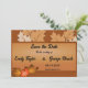 Este casamento outono elegante, exceto o convite de data, é perfeito para um casamento moderno no outono. A simples design apresenta folhas de carapaças com elegante tipografia preta sobre fundo castanho.