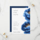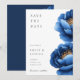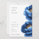 Reserve A Data Casamento Floral Dourado Azul-Marinho Elegante