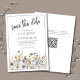 Este Casamento Floral Moderno Elegante Elegante Azul Salve a Data contém lindas flores silvestres em tipografia moderna azul, amarela e roxa e é totalmente personalizável com seus nomes, detalhes de casamento e um código QR para seu website de casamento. A design formal e a formulação adicionam um toque de elegância à sua celebração do casamento. Este item coordena-se com o Pacote de Convite para Casamento Elegante Blue Wildflower. #wildflow #bluecasamento #formalcasamento #elegantcasamento #floralcasamento