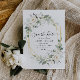 Design de tipografia branca, verde-sábio, floral branco e dourado, com letra na moda moderna. Nosso belo casamento personalizado salve os cartões de data... uma design que complementa qualquer tema de casamento. A frente da placa apresenta um texto personalizado junto com uma bela imagem.