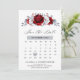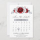 Elegante tema vermelho real branco prata cartão de calendário de casamento salvar a data com um buquê elegante de flores de rosa rubi real, carmesim, prata, botões de flores brancas puras e folhas de eucalipto. Por favor, entre em contato comigo para qualquer ajuda na personalização ou se você precisar de qualquer outro produto com este design.