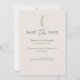 Um casamento de cinzas e verde-azeitona mínimo e elegante salva o cartão de data, com letras simples e escritas e elementos botânicos.