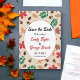 Este casamento outono elegante, exceto o convite de data, é perfeito para um casamento moderno no outono. O simples design apresenta um padrão de folhas de queda com elegante tipografia negra e burgundy sobre fundo branco.