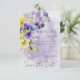 Este simples mas elegante cartão de identidade com design de local de casamento apresenta um buquê de pansias roxas, amarelas e lavandas e outras flores com verde. O plano de fundo é uma abertura de cor d'água roxa em um plano de fundo de papel d'água branco texturizado. É parte da Suite Floral Moderno Purple & Yellow criada pela Imprensa Simplesmente Farmhouse.