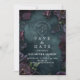 Um design dramático e elegante perfeito para casais planejando um casamento romântico. Apresentando florais profundos em tom de joia contra um pano de fundo texturizado, esta estética evoca mistério, intimidade e amor ao eterno. Ideal para o outono, gótica, ou celebrações não convencionais. Personalize-o com seus nomes, data e local.