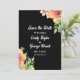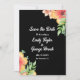 Este elegante casamento floral, salvo o convite de data é perfeito para um casamento de verão moderno. A design romântica apresenta lindas flores silvestres de aquarela com elegante caligrafia branca sobre fundo preto.