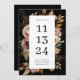 Anuncie seu casamento com estilo com este elegante cartão de salvar a data, apresentando um fundo preto profundo, flores de aquarela sombrias e tipografia moderna e ousada. O formato de data vertical centralizado adiciona um toque contemporâneo marcante, enquanto os tons suaves de blush e outono quente o tornam perfeito para casamentos rústicos, boho ou românticos de outono. O contraste dramático entre o fundo escuro e as flores delicadas cria uma aparência artística e atemporal que se destaca lindamente. Disponível como cartão impresso ou download digital.