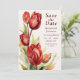 Capturar a essência do romance florescente com nosso Casamento Floral de Primavera das Tulipas Vermelhas de Aquarela Salve a Data. Adorado com tulipas vermelhas graciosas no florescimento do cheio, este design refinado irradia frescura do primavera. Anuncie seu dia especial em estilo, convidando os entes queridos a marcar seus calendários e se juntar a celebrar seu amor.