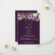 Flores roxas, amoreiras e brancas abrigadas com caligrafia feminina e fontes de serifa tradicionais para um cartão luxuoso e de cor rica. Este toque de um Jardim Inglês começa a antecipar-se ao seu casamento roxo. Cores ricas, florais de jardim frescos, com ouro em volta das suas iniciais. Inverte para o profundo EggPlant. Este estilo é vertical em tamanho menor.