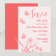 Casamento simples único, salve o cartão de data com flores rosa romântica e elegante coral e borboletas em fundo de rosa claro PARA MAIS PRODUTOS CORRESPONDENTES clique na coleção acima ou entre em contato comigo.