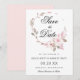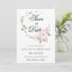 O design floral atemporal e elegante apresenta rosas rosa desbotado, peônias brancas e folhagens verde e rosa suaves. Juntos, eles criam uma grinalda que envolve as palavras Salve a Data. Seguem-se seus nomes, data e local do casamento. Salve a Data é escrito em uma fonte de texto tradicional e bonita. A mesma fonte é usada para o Convite Formal a Seguir. Todo o texto é editável. Este item combina com a coleção Rosa Rosa e Peônia.