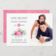 Casamento de rosas cor-de-rosa com tendência, salve o cartão de data com folhagem tropical com brilho de menta projetada para ser rápida e facilmente personalizada de acordo com as suas especificações de evento.