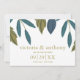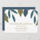 Estes cartões salve a data são perfeitos para qualquer casal planejando uma tenda celebração moderna do casamento. O design apresenta folhas de folhagem desenhadas à mão na moda em tons de azul e verde sobre um fundo branco limpo e é finalizado com uma redação simples de edição. O design simples pode ser personalizado para se adequar ao seu evento especial e será o anúncio perfeito para qualquer festa temática floral, incluindo chás de panela, noivados, chás de casamento, festas de aniversário e muito, muito mais.
