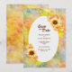 Um casamento rústico elegante, guardando o encontro com um design de girassol floral em um fundo de ouro vibrante.