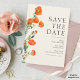 Casamento floral elegante e rústico guarde o cartão de data que pode ser personalizado com a inclusão de seus detalhes de casamento. A design apresenta papoilas com uma folhagem verde e lúcida. O design tem um estilo vintage rústico.