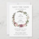 Este elegante convite de casamento boho para salvar a data apresenta uma grinalda de charme suave e delicado de rosa canela sutil e flores rosa blush, adornada por exuberante folhagem. Personalize-o com seus detalhes fácil e rapidamente, basta pressionar o botão personalizar para reorganizar e formatar o estilo e a colocação do texto. (c) The Happy Cat Studio