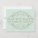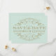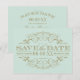 Fresco e refinado, este convite de salvar a data sem foto apresenta uma moldura elaborada de floreado dourado em um fundo macio azul-esverdeado menta. O filigrama dourado quente contra o menta fresco cria uma paleta lindamente equilibrada adequada para casamentos de primavera, jardim ou destino. Disponível em um tamanho de cartão pequeno ideal para envio com um conjunto de convites completo. Todo o texto é totalmente personalizável.
