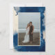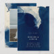 Celebre o seu amor com este convite de save the date de casamento moderno abstrato e único, com tinta azul-marinho, uma escolha contemporânea para a celebração do seu casamento. Esta peça de papelaria de casamento apresenta lavagens de tinta azul abstrata e branca creme e tipografia minimalista. Personalize-o com a foto de sua escolha no verso.