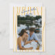 Este casamento colorido e moderno e retro, minimalista, salve a Modelo da data é excelente para você. Se você estiver procurando um Modelo de Data de Casamento bonito, elegante e fácil de personalizar. Um modelo muito elegante e único. Que apresenta o chão azul-de-fundo antigo. Com layout de texto amarelo manuscrito e caligrafia manuscrita. Com a mão amarela desenhada à mão pintada. E amarelo colorido e creme Itália lixa de verão e foto trocável no verso. Pegue este casamento de na moda, salve a data e faça seus convites realmente comprometidos.