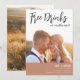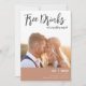 Cartões salve a data modernos em um design de texto de roteiro "Bebidas grátis e vamos nos casar". Adicione sua foto, nomes, data do casamento e local. Personalize a parte traseira da placa com uma segunda foto. Contacte-me através do botão abaixo se necessitar de assistência com o modelo, com a adição da sua fotografia ou se tiver pedidos de personalização.