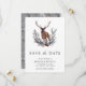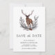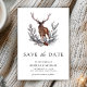 Incêndio aos seus convidados com este elegante casamento, exceto a data com um belo cervo, folhas rústicas e tipografia moderna. Basta adicionar os detalhes do seu evento neste modelo fácil de usar e enfeitar este cartão com a sua foto favorita para torná-lo um cartão "Salve a data".