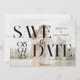 Casamento moderno, salve a data com a elegante tipografia gráfica chic design com sua foto personalizada e a camada digital faux vellum.
