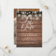 Esta rústica gravação da placa de data apresenta luzes de cordas e um script elegante salve a data acima de seus detalhes definidos em tipografia elegante em um fundo de painéis de madeira rústica e foto no verso. Projetado por Thisnotme©