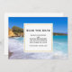 Guarde o cartão de ponto com uma fotografia de uma praia na ilha grega Creta. Uma bela praia azul tropical com surf de espuma. Um maravilhoso destino de viagem tranquilo.