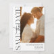 Casamento moderno Salve o cartão postal de modelo com texto de tipografia de tendência. Modelo apresenta uma foto vertical. A foto e o texto podem ser facilmente personalizados para uma única design única para seu dia especial