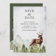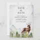 Incêndio aos seus convidados com este elegante casamento Salve a data com um belo cervo, pinheiros rústicos e montanhas ao fundo. Basta adicionar os detalhes do seu evento neste modelo fácil de usar e enfeitar este cartão com a sua foto favorita para torná-lo um Cartão único para guardar a data.