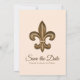 Dourada Fleur de Lis crest e ensinou o tema salvar o cartão de data com uma imagem de noivado que você carrega, os nomes da noiva e do noivo e a data do casamento.