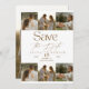 Casamento elegante Salve a data com foto. Cores clássicas de branco com bege com foto. Casamento minimalista e luxuoso salve a data.